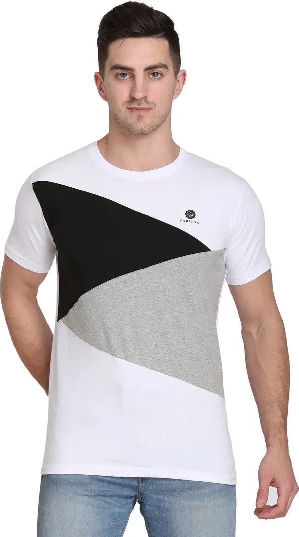 Multicolor Cotton Blend Colorblock T-Shirt For Men