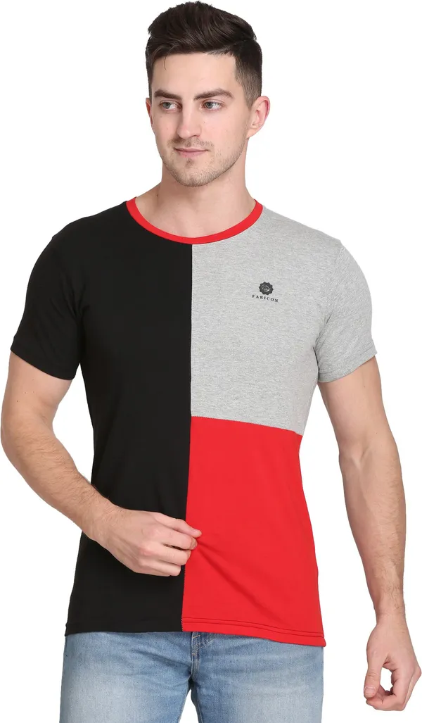 Multicolor Cotton Blend Colorblock T-Shirt For Men